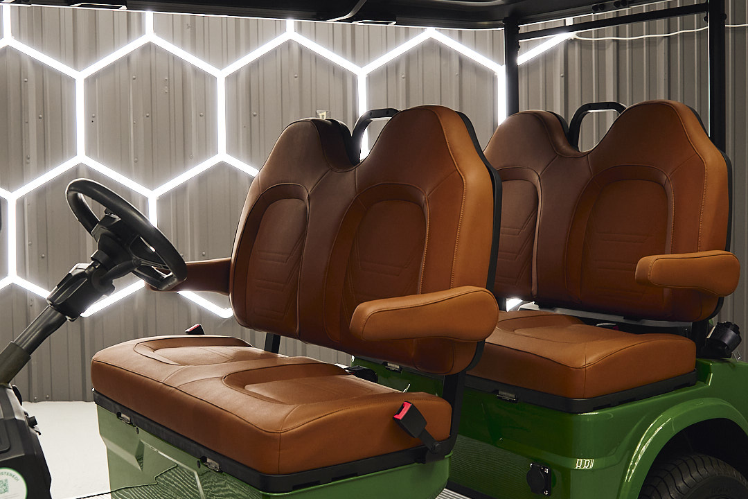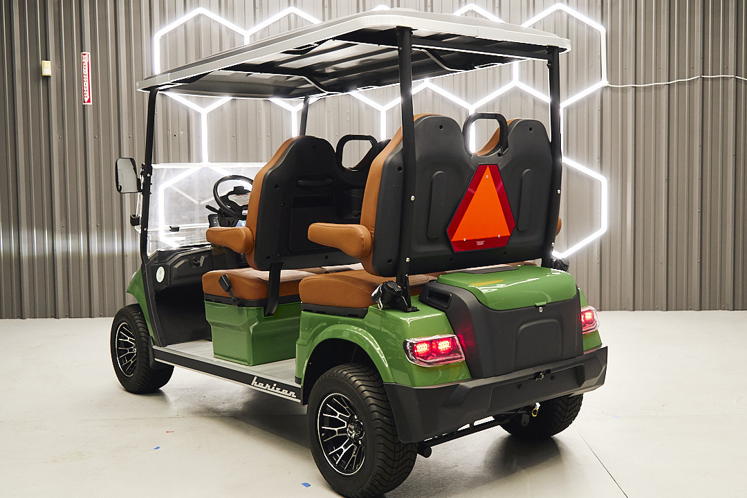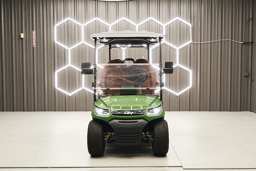 The 2025 Advanced EV Advent Horizon is AdvancedEV's brand new model.  This model is not your average four seater golf cart, as it comes from the factory with a lithium battery, full support seats with adjustable arm rests, a LCD display screen with reverse camera, wet sound marine speakers, and a fitted and removable cooler in the rear.