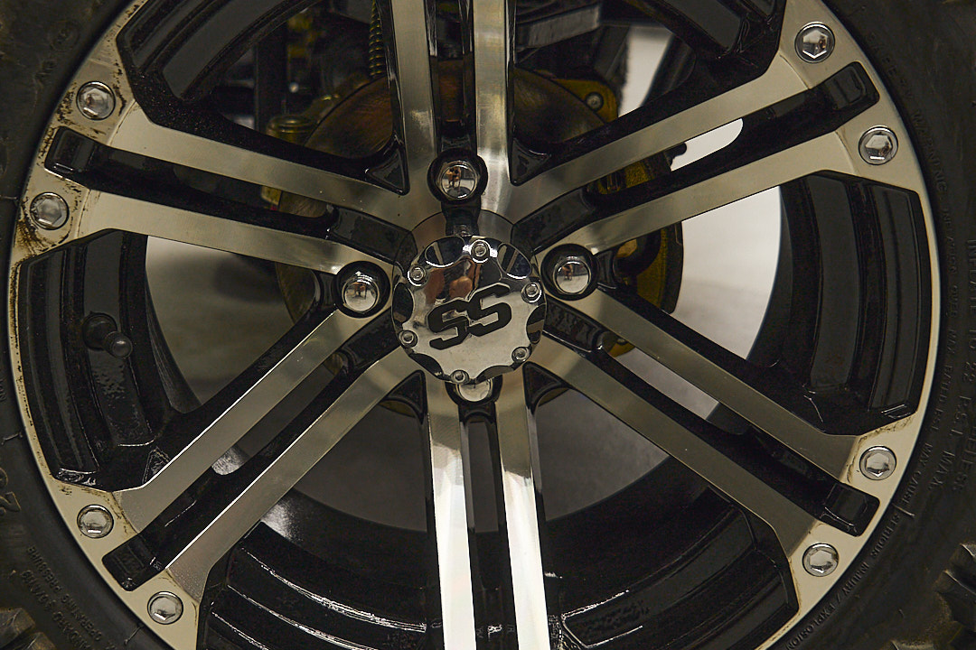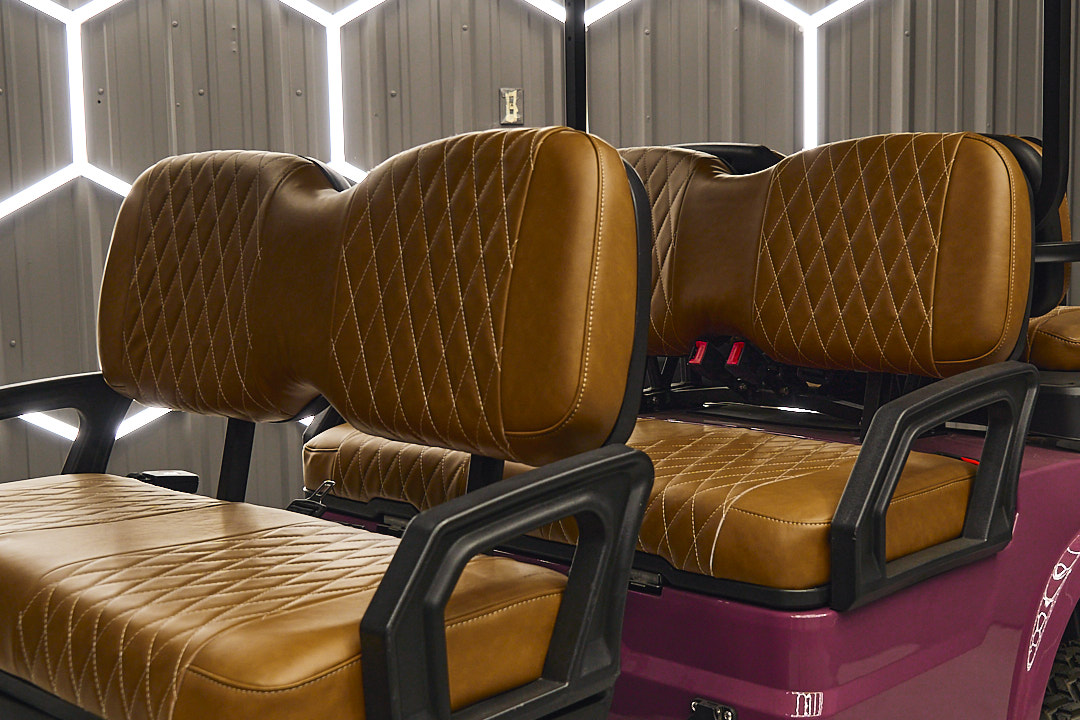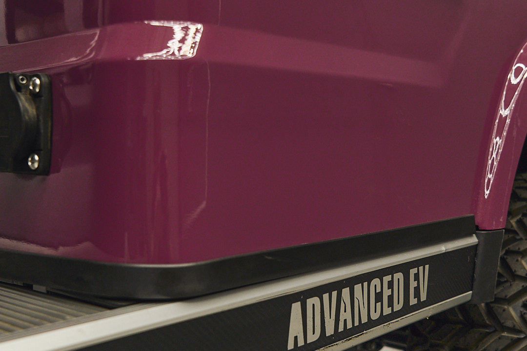 The 2026 Lithium Advanced EV Lifted Advent 6L is a six-passenger golf cart with an ECO105AH lithium battery, approximately 25 mph top speed, and 4-wheel hydraulic disc brakes. It has a long top and windshield, LED lights, turn signals, side mirrors, seat belts, and dual USB charging ports.