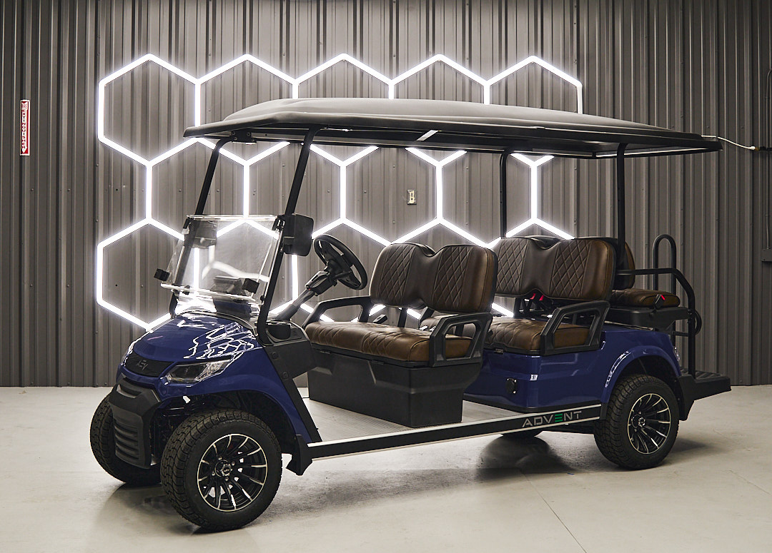 The 2026 Advanced EV Advent 6 is a lithium-ion powered, six-passenger golf cart. It has a top speed of 19 miles per hour and a 2-inch lift.