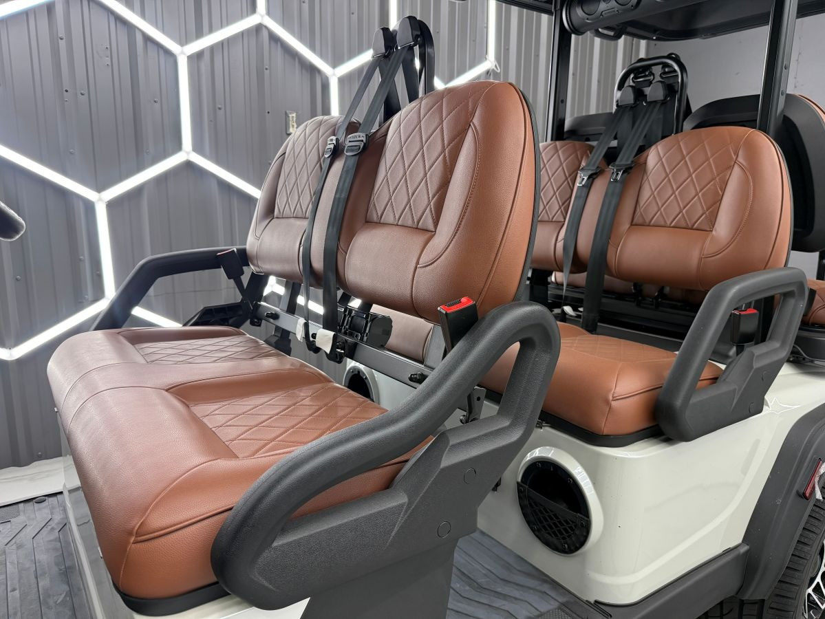 • Seats*: Black with Color Matched Body Stitching, Brown Seats on Forest and White, 3-Point Restraints (x6), Foam Molded Armrests