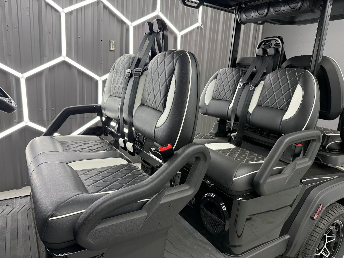 • Seats*: Black with Color Matched Body Stitching, Brown Seats on Forest and White, 3-Point Restraints (x6), Foam Molded Armrests