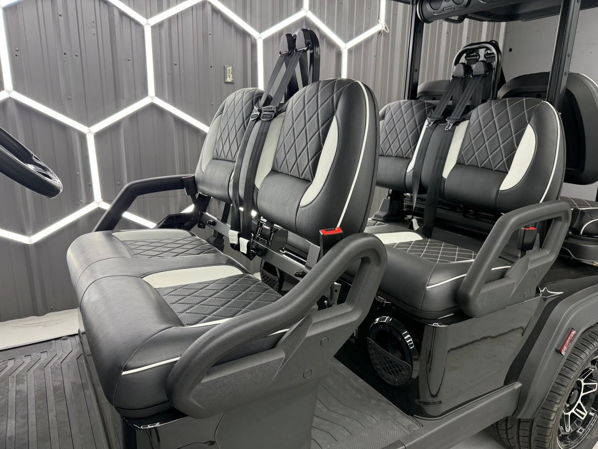 • Seats*: Black with Color Matched Body Stitching, Brown Seats on Forest and White, 3-Point Restraints (x6), Foam Molded Armrests